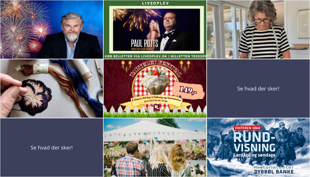 På Sønderborg Teater vil operastjernen Paul Potts skabe en uforglemmelig musikalsk oplevelse fredag aften. Potts, kendt fra Britain’s Got Talent, optræder med elskede operaklassikere og nytårstoner. Den danske sangerinde Helene Hørlyck vil også være på scenen. Entré koster 485 kr.